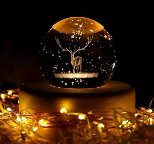 This beautiful 3D Deer crystal ball light makes a stunning decorative accent and unique gift. The intricately carved deer sculpture floats gracefully within its orb-shaped crystal enclosure. Soft ambient light emanates from within, adding an enchanting magical quality. Suspended within its clear globe, this one-of-a-kind deer art piece can be displayed on a tabletop, mantle or shelf to illuminate any space. Both whimsical and serene, it makes an thoughtful present for friends, family or oneself. Suitable for a range of decorative styles, this special gift brings charm and wonder.
